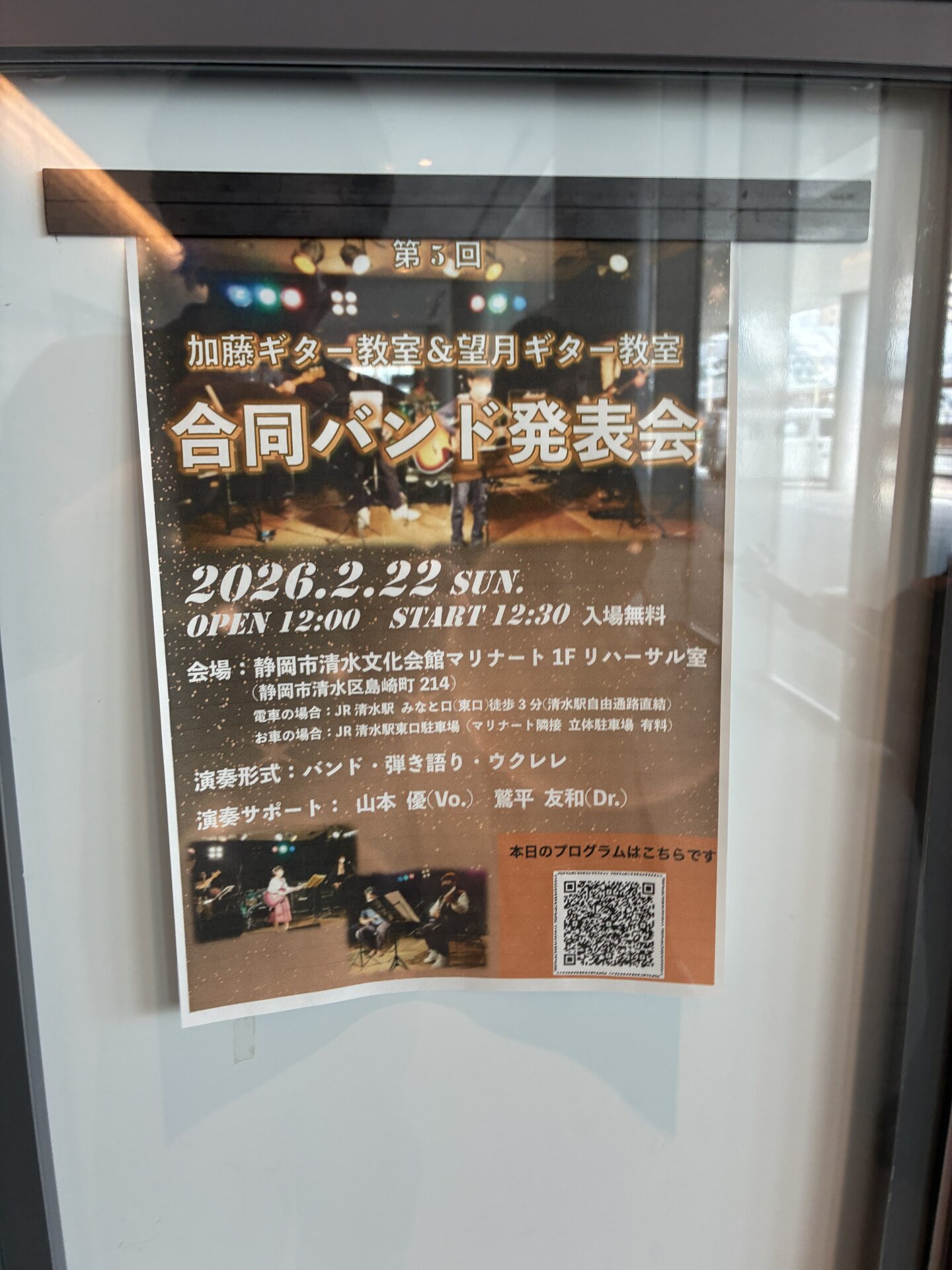 2026年2月22日清水マリナートにて加藤ギター教室、望月ギター教室合同バンド発表会が無事終了しました。